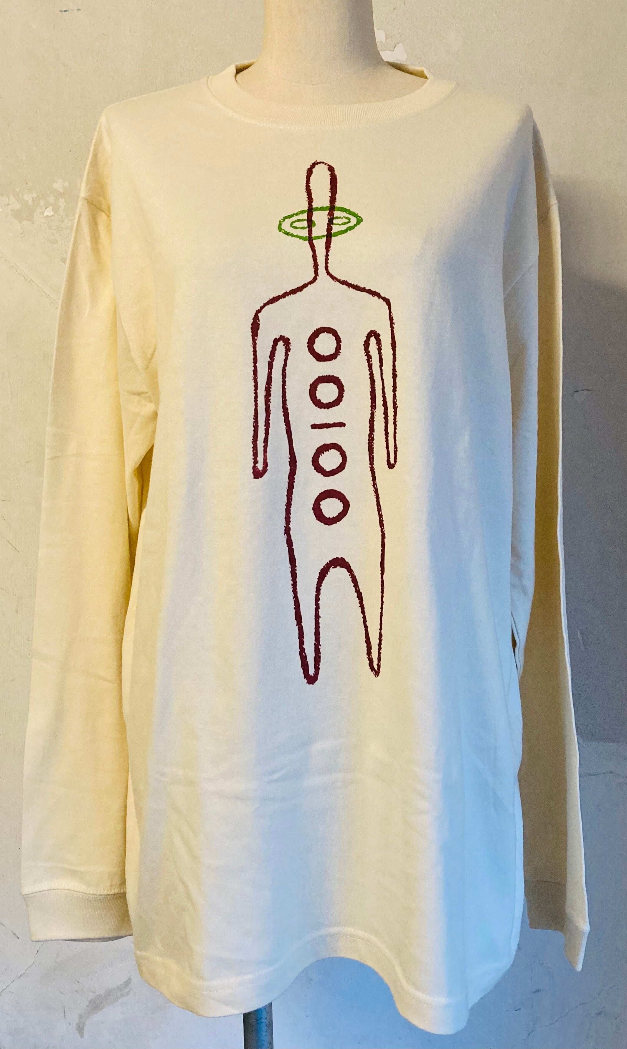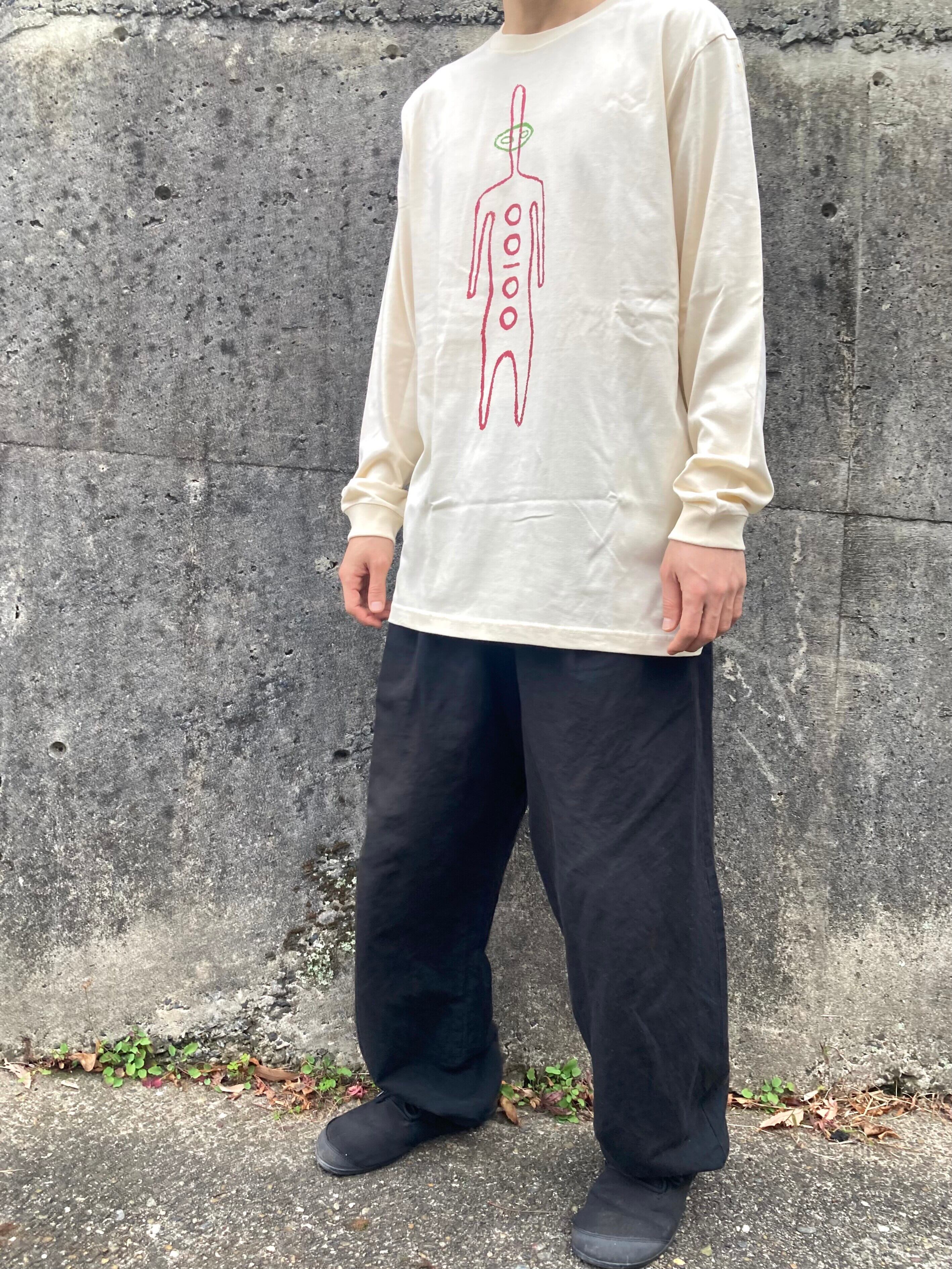 Long Sleeve T-shirts BODY / United Athle 5.6oz / 1.6インチリブ MATERIAL / 100% Cotton BODY COLOR / Vintage Natural PRINT COLOR / Wine Red & Green Silkscreen printing by S.M.I. Designed with support from Essential Store. model / 身長175cm・XLサイズ着用